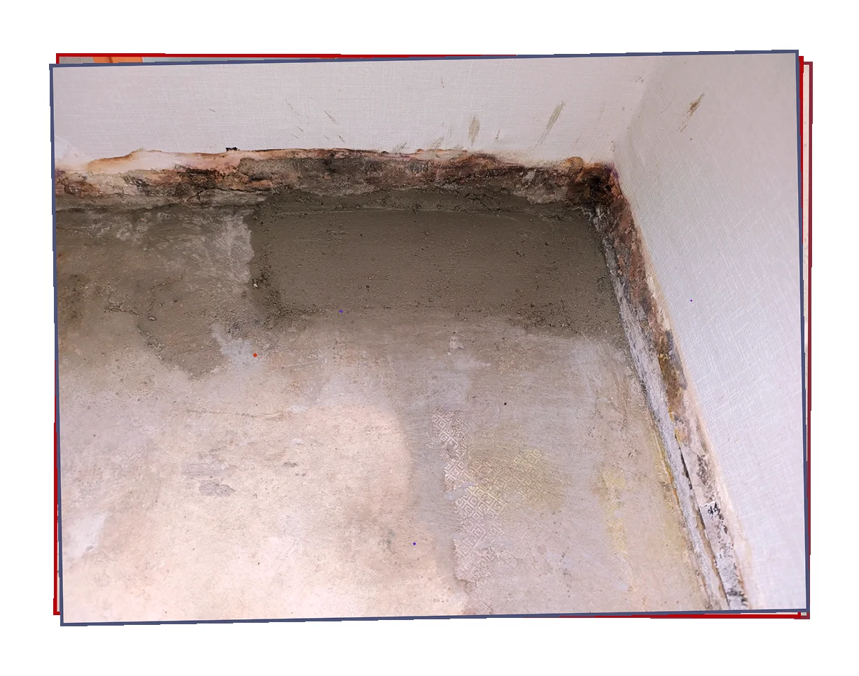 마감재 뒤편에는 광범위한 물 피해가 있었고